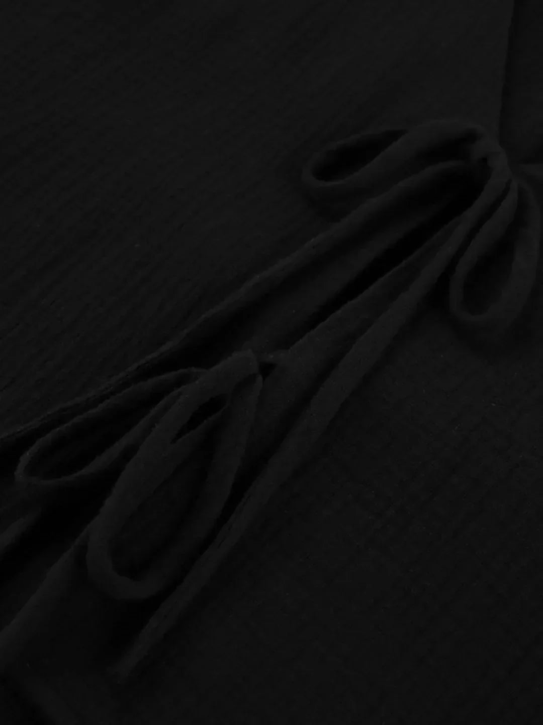 Design: Un set chic din două piese, care include o bluză relaxată cu mânecă lungă și un detaliu elegant de fundă în față, asortată cu pantaloni scurți cu talie înaltă pentru un look coordonat fără efort. Designul minimalist combină confortul cu eleganța modernă.